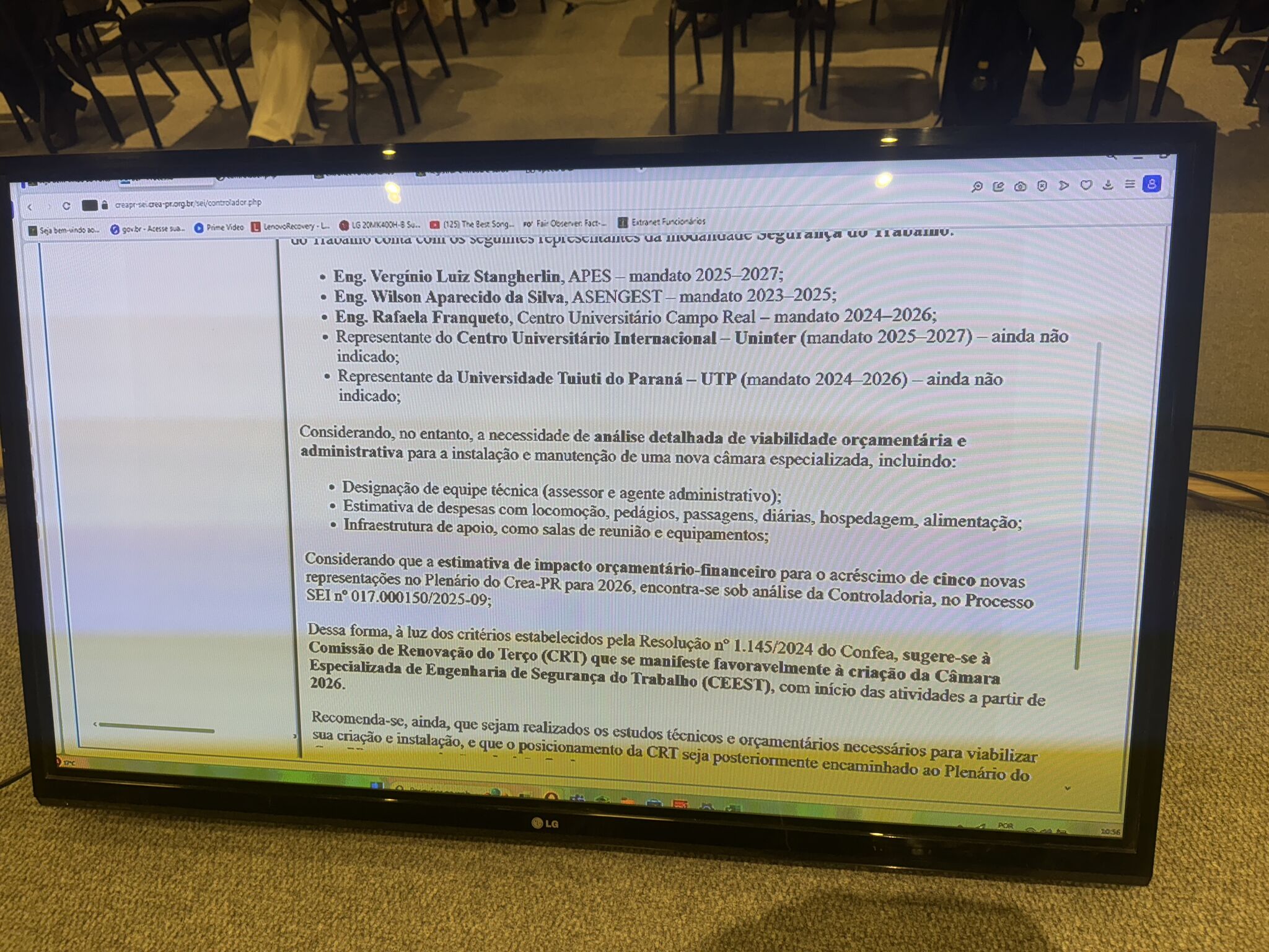 É com enorme satisfação que compartilho que, na Comissão de Renovação do Terço – CRT, foi proposto a criação da Câmara Pura de Engenharia de Segurança do Trabalho (CEEST) no CREA-PR.
