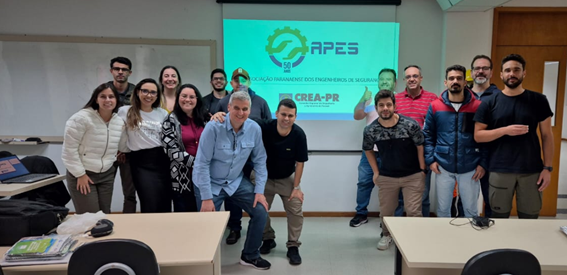 No dia 19 de outubro de 2024, a APES – Associação Paranaense dos Engenheiros de Segurança participou de uma importante apresentação institucional para os alunos da especialização em Engenharia de Segurança do Trabalho da Universidade Tecnológica Federal do Paraná (UTFPR), em Curitiba. O evento, realizado a convite do professor e engenheiro de segurança Roberto Serta, contou com a participação do Vice-Presidente da APES, Sérgio Jonas Ferreira Júnior, e do Diretor de Relações Públicas, Roberto Sgrott da Silva.